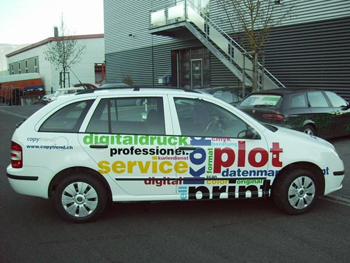 Wir beschriften vom PKW bis zum LKW alle Fahrzeuge, Anhänger und LKW-Planen mit computergeschnittenen Folienschriften und Logos.Bilder drucken wir mit unserem neuen Digitaldrucksystem und applizieren sie fachmännisch auf ihr Fahrzeug.